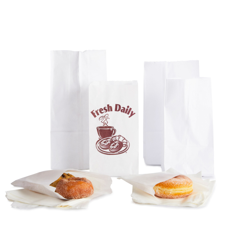 From baked quiches, fresh donuts, to hot sandwiches, our convenient and attractive bags will leave your customers feeling confident about their purchase. Build just for efficiently distributing smaller products such as donuts, bagels, egg rolls, pastries etc, these white paper bags will ensure the reliable protection that your customers need and deserve.