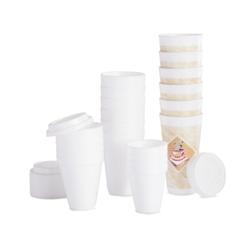 Paper or foam, confidently serve your hot beverages in the variety of cup sizes that we offer. Our strong and durable paper cups include a poly-lined interior that prevents leakage and maintains the temperature of various beverages. Our cups come in 12 oz, 16 oz and 20 oz, which are perfect for holding morning coffees, hot chocolate and teas.