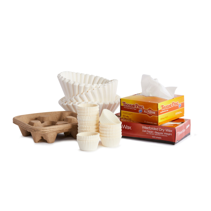 Running a coffee shop or bakery requires accessories such as pick up tissue, baking cups, fryer filters, wax wrap and more. Let us be your right-hand man in all the paper and wax items needed to keep your shop running successfully.
